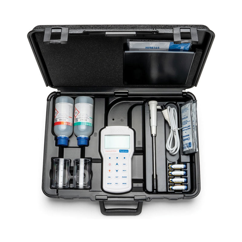 Perfect your cheesemaking process with the Hanna HI98165 Professional Portable Cheese pH Meter, the ultimate diagnostic tool for artisanal and industrial dairy producers in Pakistan. This rugged, waterproof (IP67) meter is supplied with the specialized FC2423 Foodcare pH electrode, featuring a durable stainless steel body and a conical glass tip designed to penetrate cheese wheels, curds, and semi-solids without damaging the product. The probe utilizes an open junction design with Viscolene hard gel, creating a solid interface that is impervious to clogging from cheese proteins and fats, ensuring instant, stable readings.